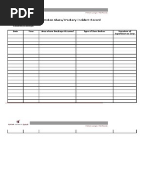 Glass breakage record sheet.